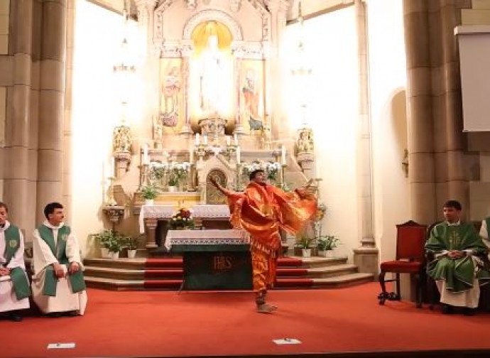 Paese che vai, vescovo che trovi. In Ungheria, precisamente a Budapest, un sacerdote gesuita indiano durante una concelebrazione, ha voluto mostrare ai fedeli e ai confratelli, l’annuncio dell’Angelo a Maria. Poteva bastare un quadro del Beato Angelico. Invece no. Ha pensato di vestirsi di tutto punto con il costume tipico indiano e ha eseguito una danza sull'altare. Ovviamente che fosse durante il momento della messa lo si può constatare dai paramenti dei sacerdoti, escluso il gesuita. Questi si chiama Padre George e ha danzato il 17 settembre scorso nella chiesa del Sacro cuore di Budapest, ma non è nuovo a queste performance paraliturgiche. Il tutto è documentato da questo video su Youtube, che un lettore solerte ci segnala definendolo “agghiacciante”. Vedere per credere. Musica arpeggiante, petto nudo e sonagli per la performance sotto lo sguardo inebetito dei poveri confratelli. Mancava solo il serpente che sbucava dal cesto.