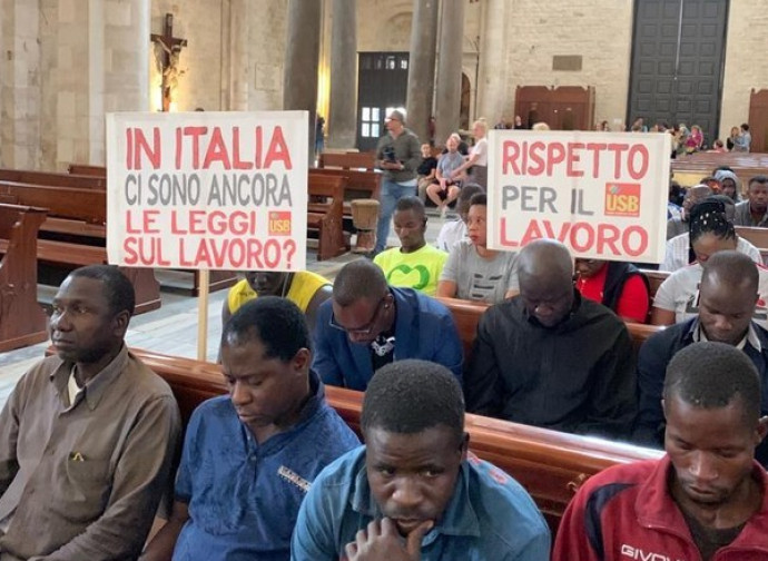 Stiamo parlando di ciò che è avvenuto a Bari, il 16 luglio scorso, nella splendida basilica di San Nicola in cui si è svolto un “sit-in” di protesta con i braccianti-migranti, provenienti dal ghetto di Borgo Mezzanone, in provincia di Foggia, insieme alla delegazione dell’Unione sindacale di Base, per alzare la voce contro lo sfruttamento nelle campagne del foggiano. Puntando il dito contro il governo giallo-verde e chiedendo un incontro con l'arcivescovo Francesco Cacucci, “perché la Regione Puglia e il governo latitano in totale indifferenza”.